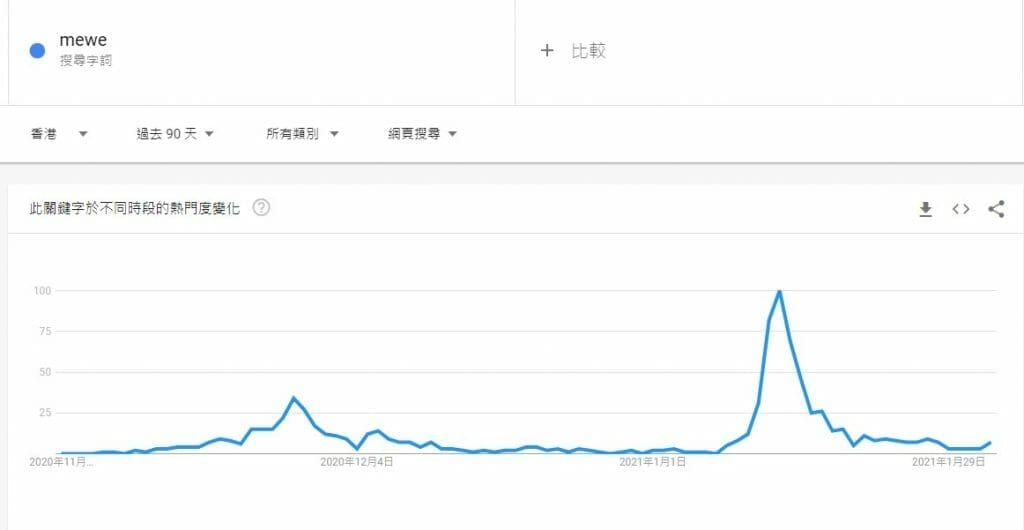 先用網絡運營的角度,分析一下近日的熱潮。以MeWe為例,這個模仿Facebook的社交平台,在11月底及1月中曾經在Google Trends中飆升,相信亦是該兩段時間讓教會弟兄姊妹開始提出轉移的需要。Whatsapp 1月4日公佈新條款時,MeWe仍未有熱潮,直至1月10日開始,才成為了社會討論的熱點。所以我個人認為,MeWe冒起,未必是自然趨勢,而是有人利用了是次Whatsapp事件及大眾對Facebook壟斷的負評,而操作冒起的事件。